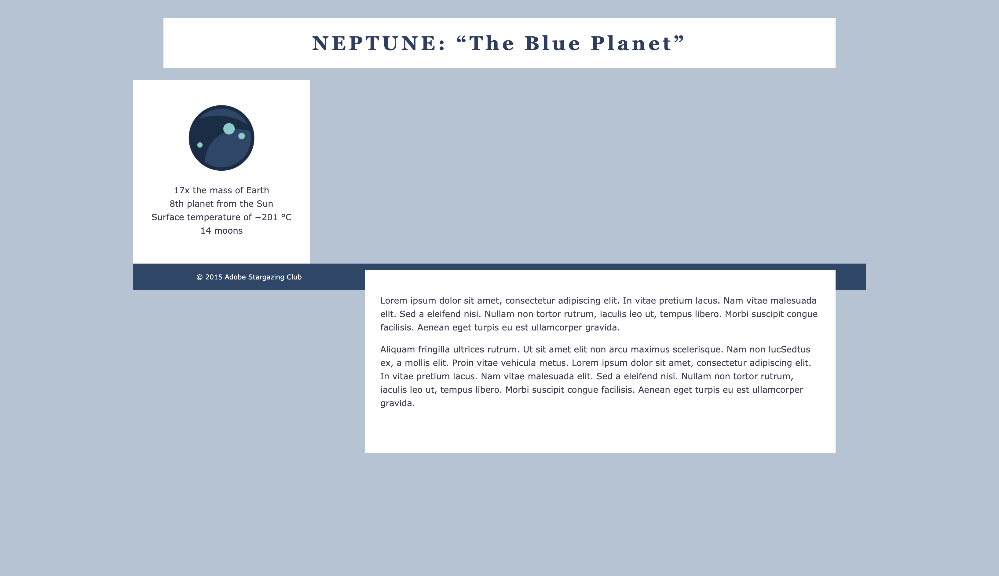 This project was made to experiment with Adobe Dreamweaver's CSS layout functions to make columns.
